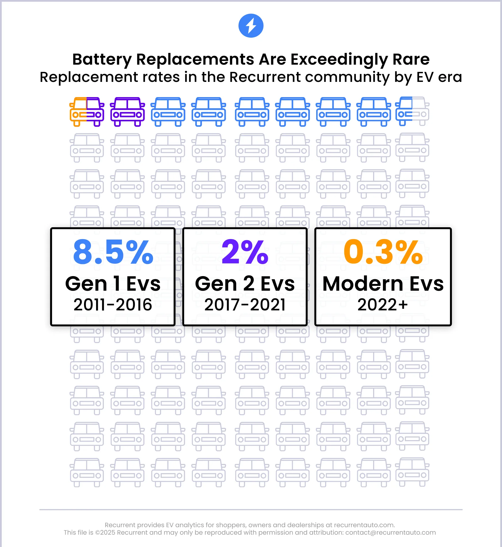 - Wśród pierwszej generacji EV (sprzed 2016 r.) wskaźnik wymiany to ok. 8.5%.