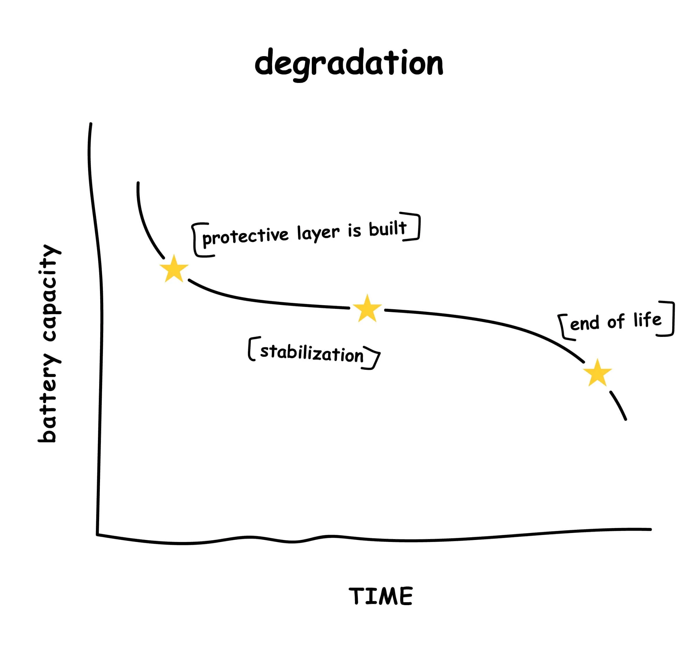 Co ciekawe, degradacja nie jest liniowa. Zarówno dane ze świata, jak i testy laboratoryjne pokazują, że baterie litowo-jonowe starzeją się według krzywej w kształcie litery S.