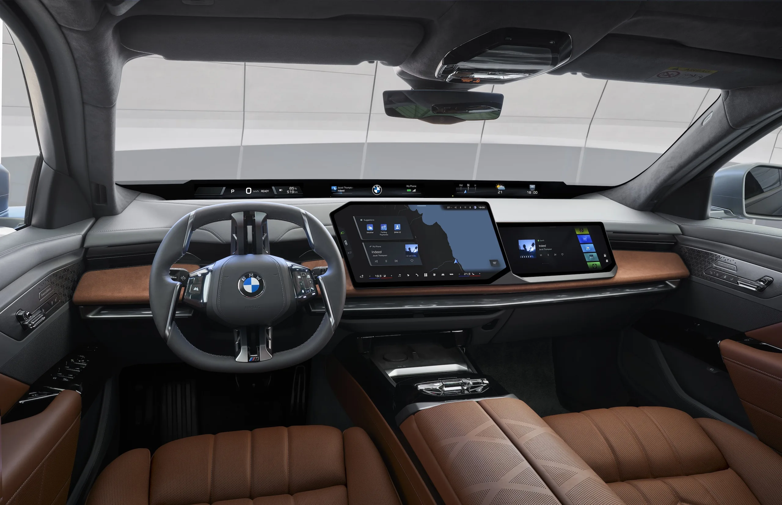 We wnętrzu widać jeszcze większy nacisk na cyfryzację. Najważniejsze nowości to panoramiczny interfejs BMW Panoramic iDrive, nowy system operacyjny BMW X oraz ekran dla pasażera z przodu. Z tyłu pasażerowie dostają rozwinięty Theatre Screen z obsługą streamingu 8K, gier i wideokonferencji.