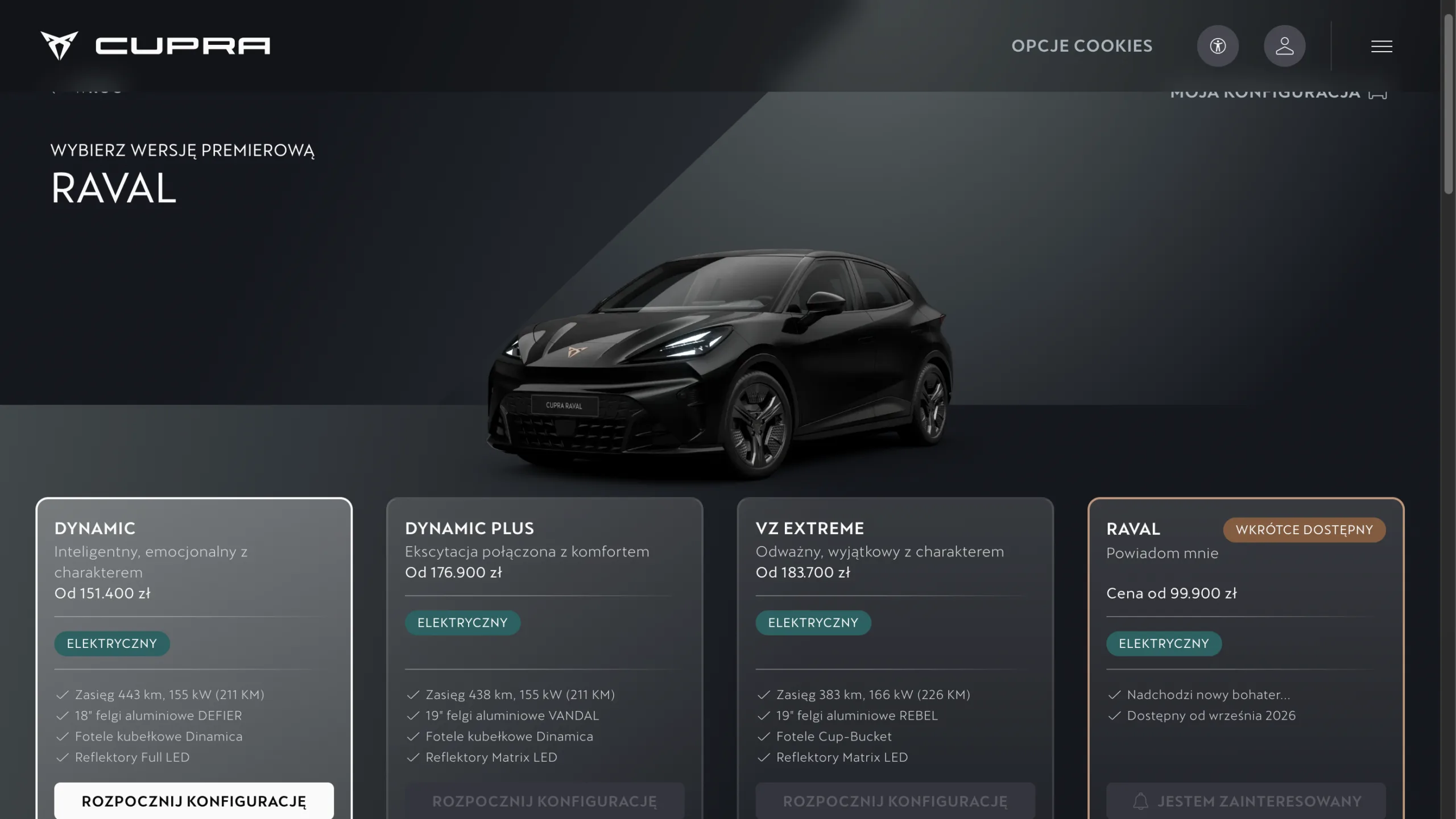 Na dziś najważniejszy fakt jest prosty: Cupra Raval nie startuje w Polsce jako elektryk za 99 900 zł, tylko jako model za 151 400 zł. Tańsza wersja ma pojawić się później i dopiero wtedy będzie można uczciwie ocenić, czy rzeczywiście mówimy o nowym punkcie odniesienia w segmencie małych aut na prąd.