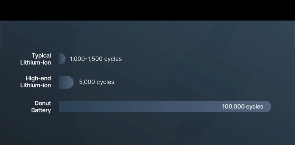 Najbardziej podejrzana jest liczba cykli: 100 000. Dla porównania, najlepsze obecnie ogniwa LFP wytrzymują 3000-5000 cykli, a laboratoryjne prototypy solid-state walczą o przekroczenie kilku tysięcy bez pękania stałego elektrolitu. Deklaracja o 100 tysiącach cykli sugeruje trwałość na poziomie superkondensatorów, które jednak mają fatalną gęstość energii. Donut Lab twierdzi, że ma i jedno, i drugie.