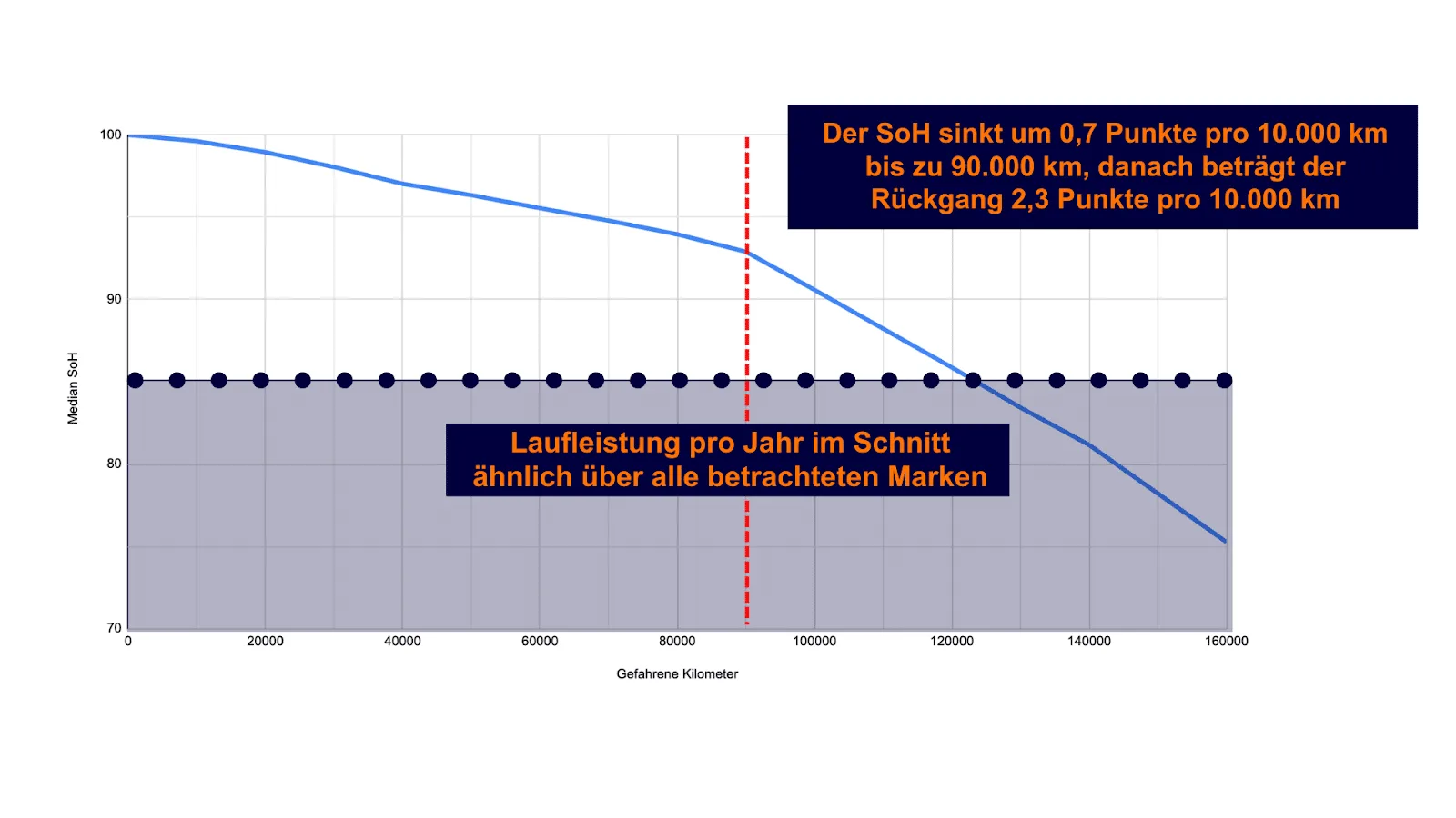 | Spadek SoH do 90 tys. km | 0,7 pkt proc. / 10 tys. km |