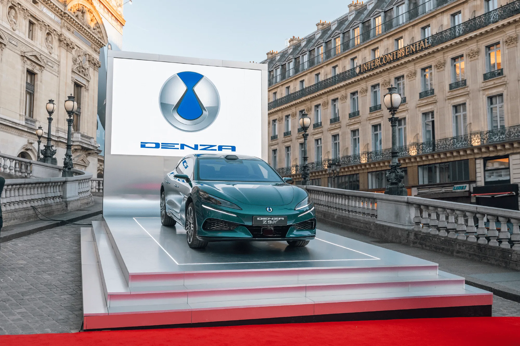 Premiera odbyła się 8 kwietnia w Paryżu. Na początek Denza pokazała europejskiej publiczności trzy modele: elektryczną Denzę Z9 GT, hybrydową Denzę Z9 GT DM-i oraz vana Denza D9 DM-i.