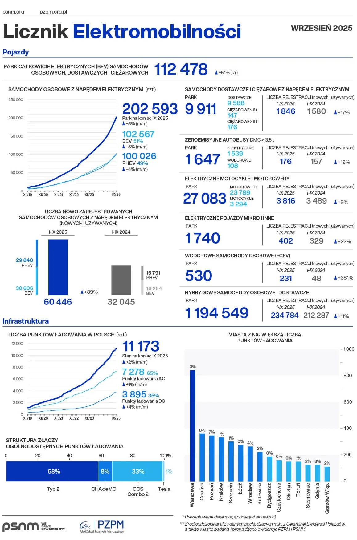 Trend ten widać również w innych segmentach rynku. Park elektrycznych pojazdów dostawczych i ciężarowych zbliża się do 10 tysięcy sztuk, a na drogach mamy już ponad 27 tysięcy elektrycznych jednośladów. Równolegle rozwija się infrastruktura – w Polsce funkcjonuje 11 173 ogólnodostępnych punktów ładowania. Z tego 65% to wolniejsze punkty AC, a 35% to szybkie ładowarki DC, kluczowe dla komfortu podróżowania na dłuższych trasach.