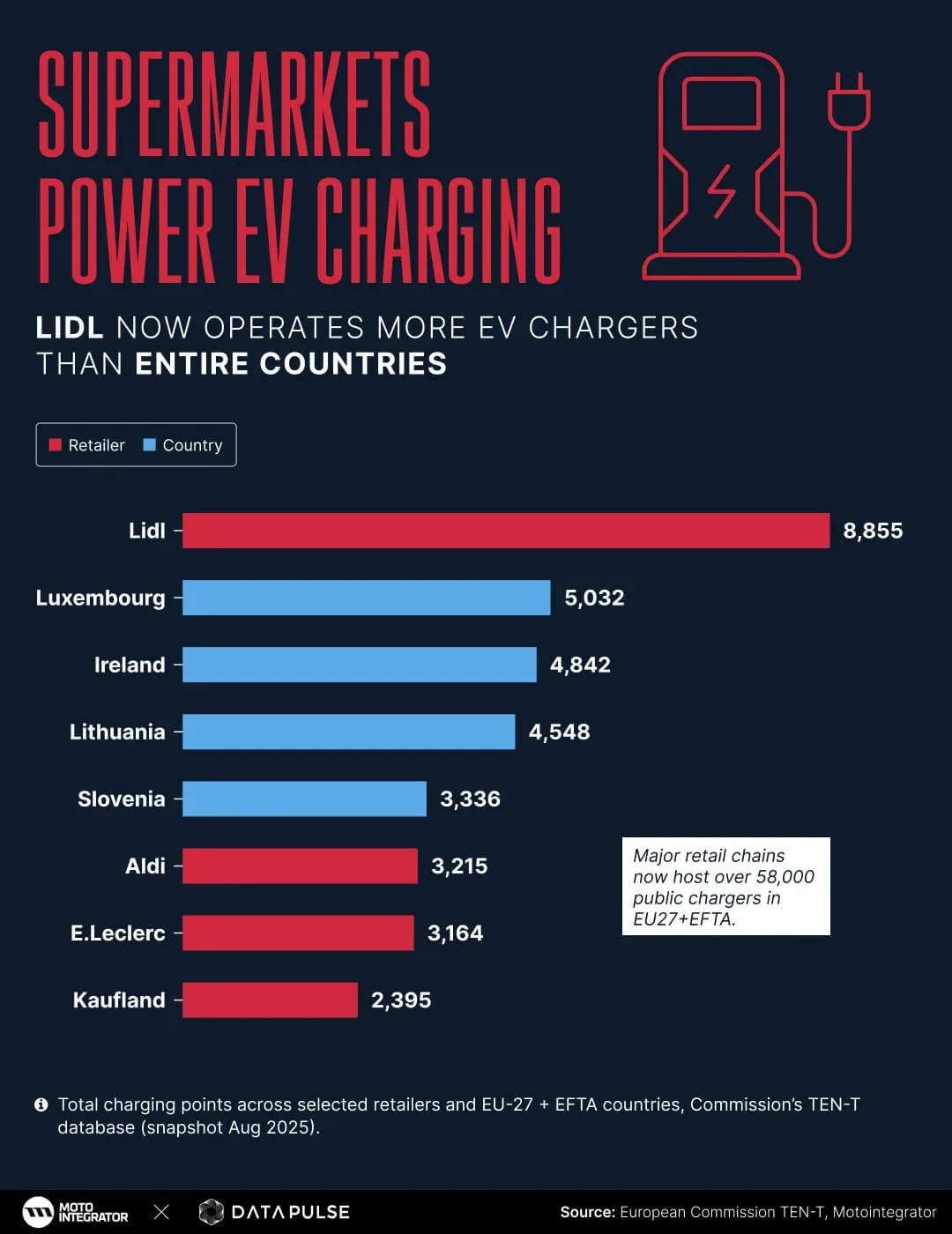 12 | Lidl | 8 855 | Francja (33%), Niemcy (10%), Węgry (5%) | Sieć ładowania należąca do sieci detalicznej |