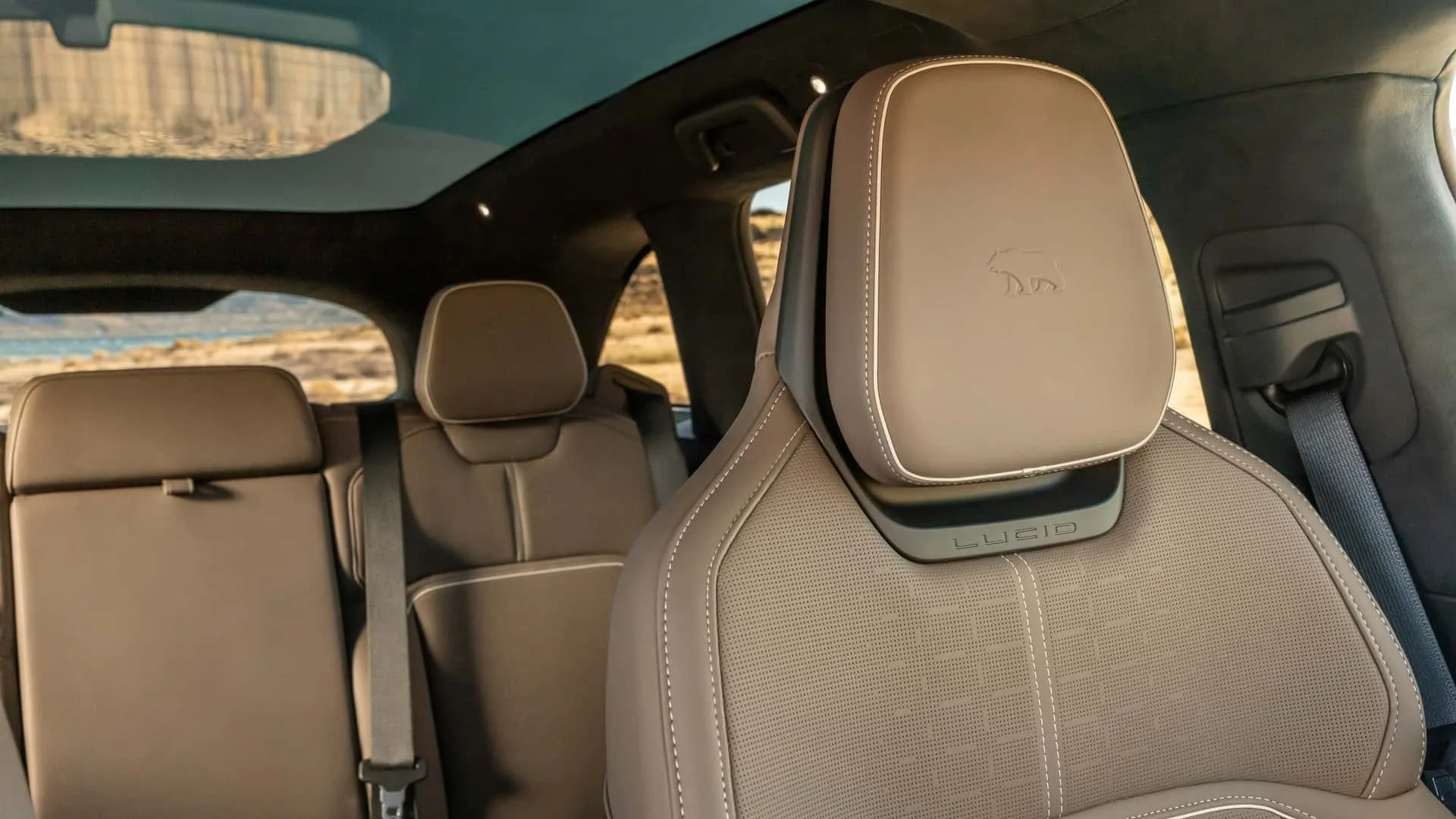 To, co najważniejsze w SUV-ie, pozostało nietknięte. Lucid nie zabrał nam ani litra z przestrzeni bagażowej. Zarówno przedni bagażnik (frunk) o pojemności blisko 230 litrów, jak i gigantyczna przestrzeń ładunkowa z tyłu są identyczne jak w droższej wersji. To pokazuje, że cięcia kosztów dotknęły głównie układu napędowego, a nie funkcjonalności nadwozia.