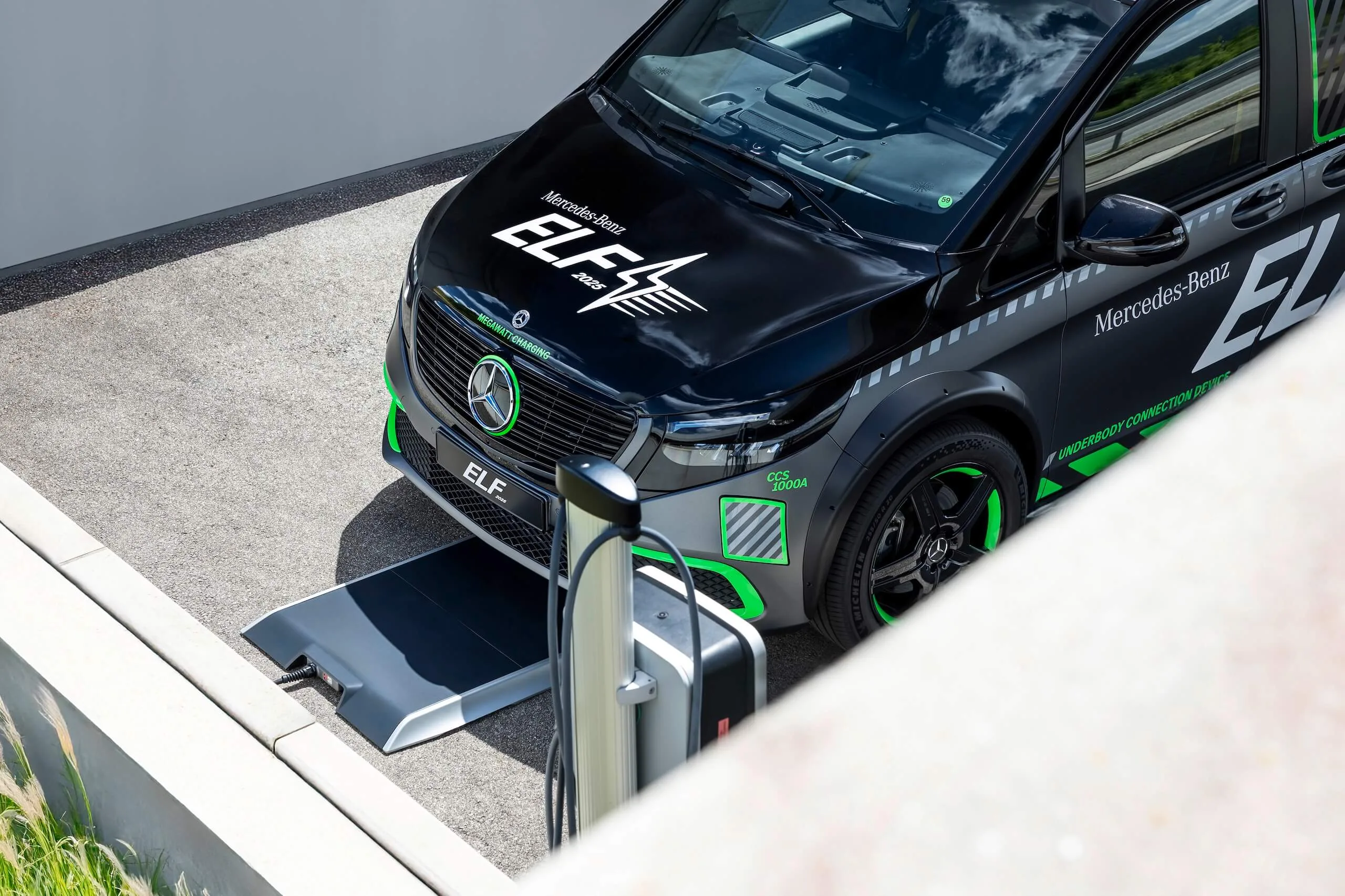 Jak to osiągnięto? We współpracy z firmą Alpitronic, znanym producentem stacji ładowania, wykorzystano ładowarkę przeznaczoną dla systemu MCS (Megawatt Charging System dla ciężarówek) i podłączono do niej kabel CCS z ulepszonym chłodzeniem. Efekt? Przesył prądu o natężeniu 1000 amperów, czyli dwukrotnie więcej niż pozwalają obecne standardy. To właśnie ta technologia pozwoliła prototypowemu modelowi Concept AMG GT XX podczas rekordowego przejazdu naładować się na 400 km zasięgu w zaledwie pięć minut. System MCS również jest na pokładzie vana ELF, ale służy głównie do testowania wytrzymałości komponentów w ekstremalnych warunkach. Mercedes na razie nie planuje montować tego potężnego złącza w autach osobowych.