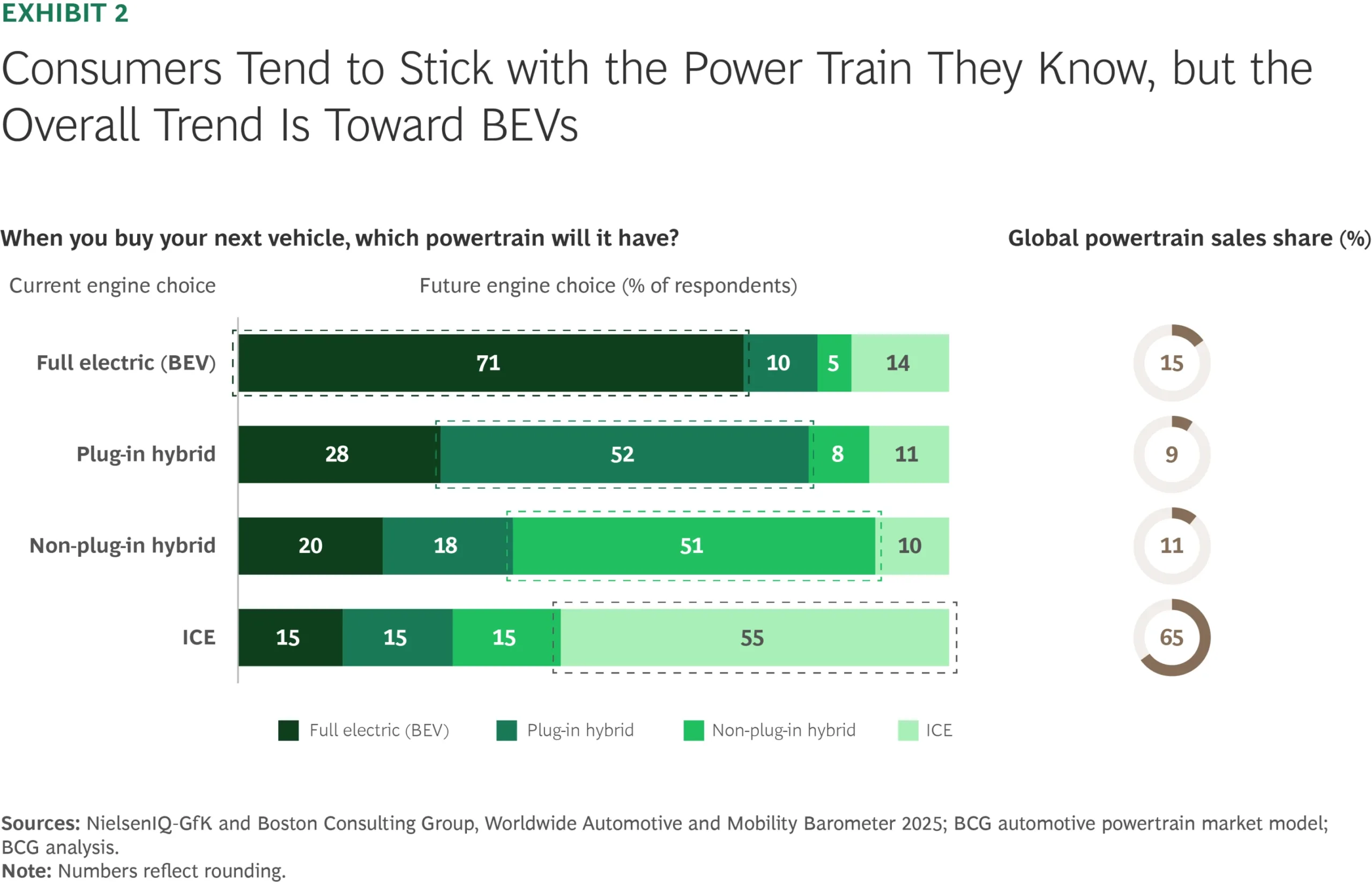 Co więcej, BCG udowadnia istnienie „drabiny elektryfikacji”. Im bliżej pełnej elektryczności, tym większa chęć na ostatni krok: