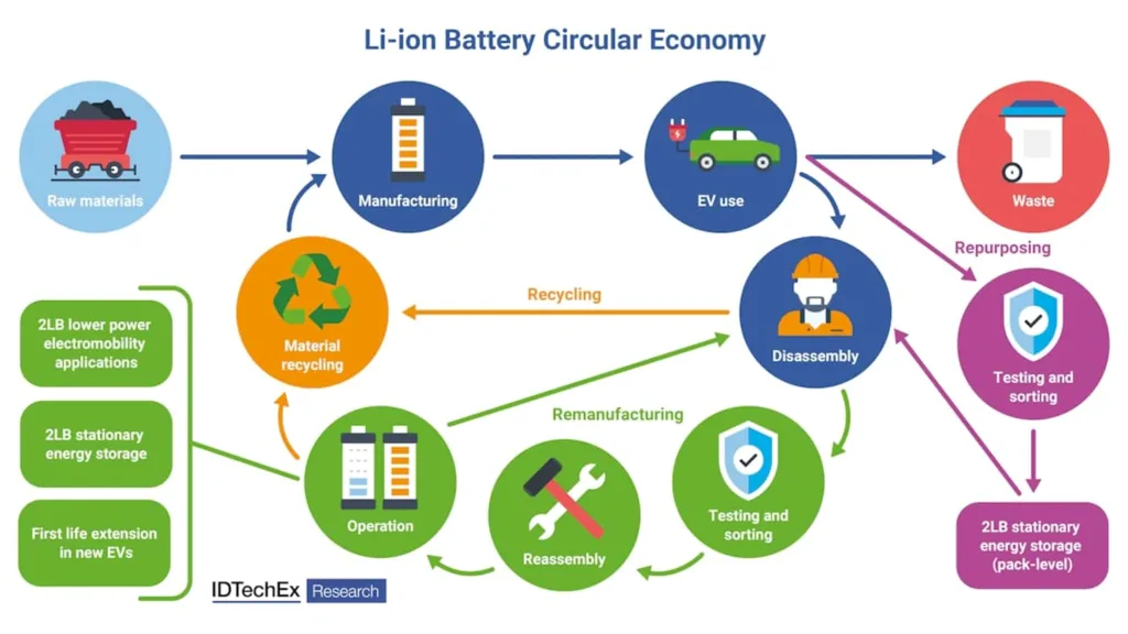 Branża pojazdów elektrycznych (EV) staje przed szansą na jeszcze większą efektywność dzięki recyklingowi i ponownemu wykorzystaniu baterii. Wprowadzenie zasad gospodarki obiegu zamkniętego – redukcji, ponownego użycia i recyklingu – może zrewolucjonizować sposób, w jaki zarządzamy bateriami litowo-jonowymi. Według prognoz, rynek używanych baterii (Second-Life EV Battery Market) może osiągnąć wartość miliardów dolarów w ciągu najbliższych dziesięcioleci.