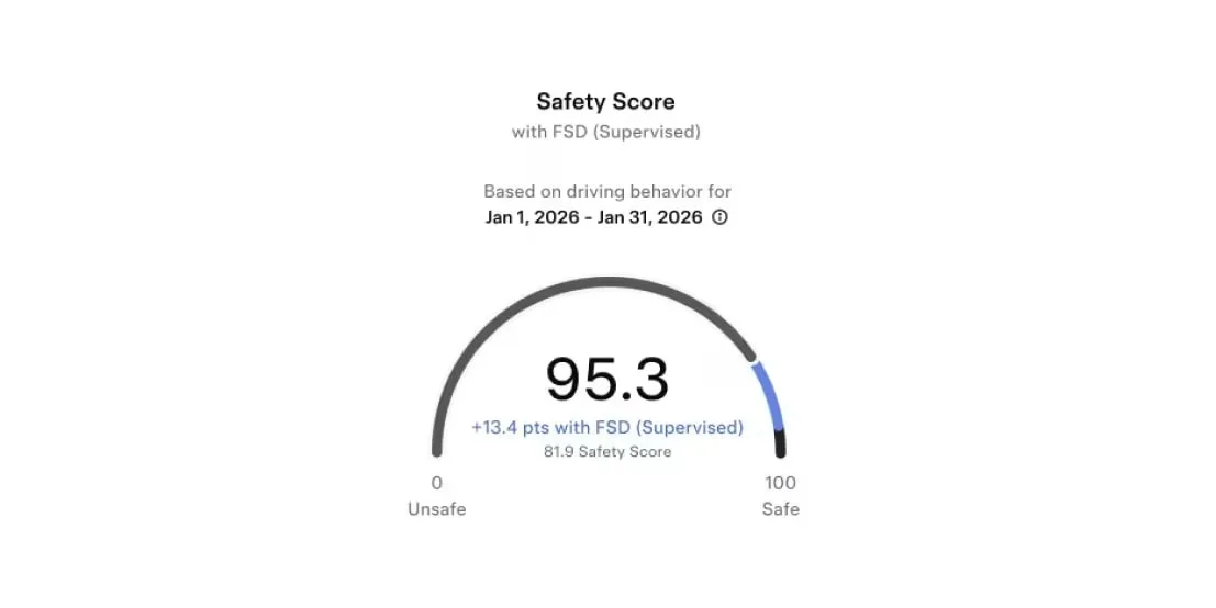 Najmocniejszy ruch jest prosty: każda mila przejechana z włączonym FSD Supervised dostaje wynik 100. W praktyce oznacza to, że użytkownik korzystający z FSD może poprawiać swój średni wynik bezpieczeństwa i obniżać miesięczną składkę.