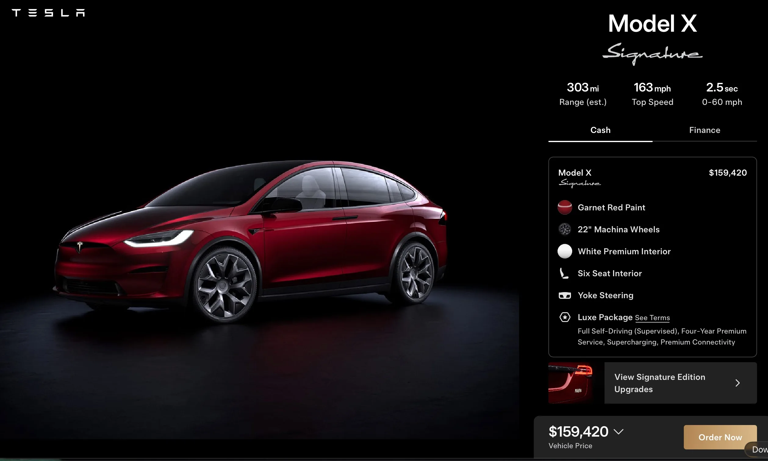 | Tesla Model X Signature Edition | 100 | 159 420 USD | 1 rok | 50 000 USD lub wartość sprzedaży |