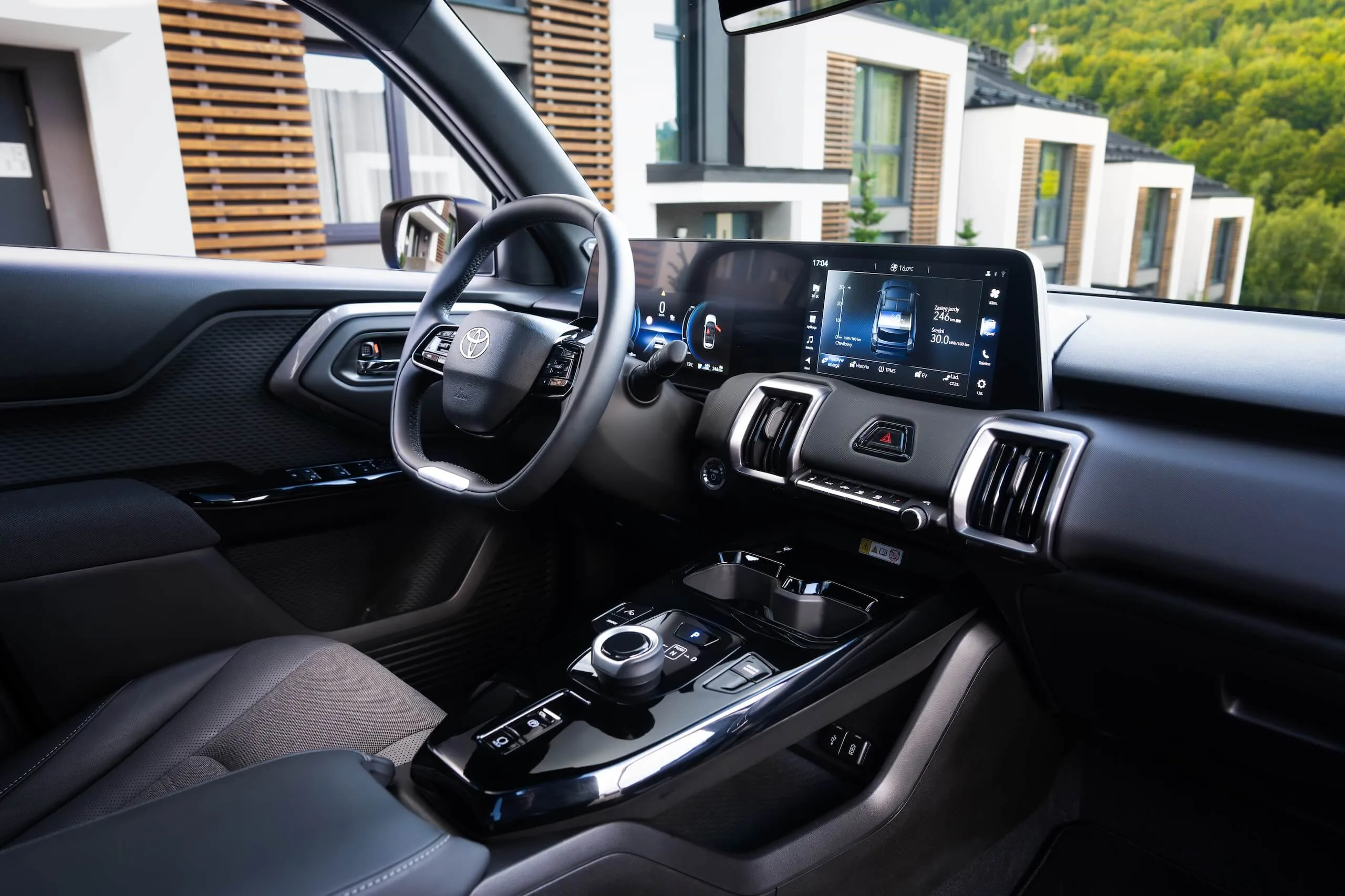 Wnętrze łączy cyfryzację z klasyczną ergonomią. Mamy tu dwa ekrany: 10,25-calowy wirtualny kokpit i 10,1-calowy dotykowy system multimedialny. Co ważne dla wielu kierowców, Toyota pozostawiła fizyczne przyciski do obsługi klimatyzacji i wyboru trybów jazdy na konsoli centralnej.