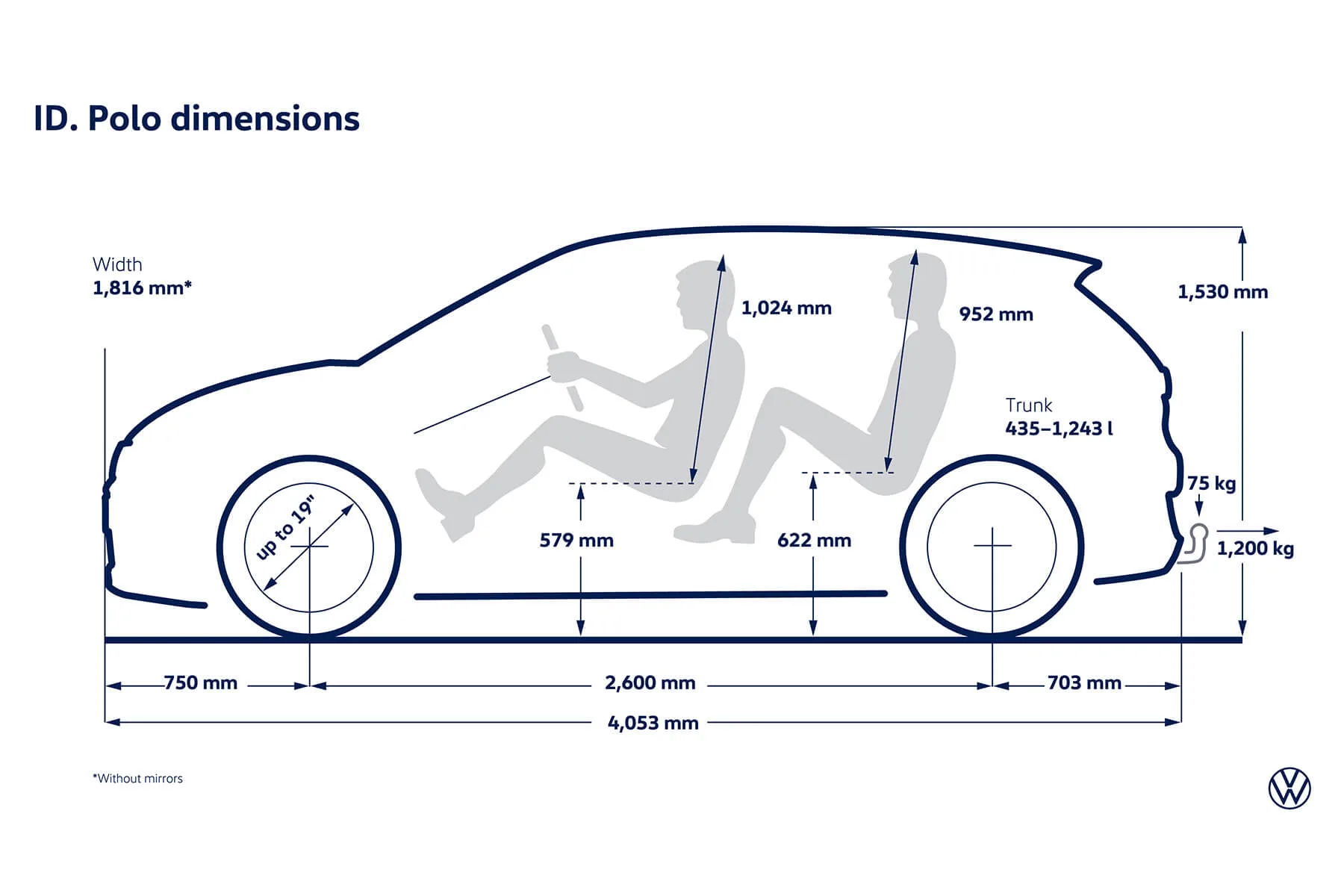 Wymiary ID. Polo (4,05 m długości, 2,60 m rozstawu osi) plasują go niemal idealnie w obrysie spalinowego odpowiednika, ale wnętrze gra w innej lidze. Producent wykorzystał zalety napędu elektrycznego, wygospodarowując dodatkowe 19 mm przestrzeni w kabinie. Prawdziwa rewolucja zaszła jednak w bagażniku. 435 litrów pojemności to wynik zawstydzający spalinowe Polo (351 l) i deklasujący większość konkurencji w segmencie B. Po złożeniu foteli przestrzeń rośnie do 1243 litrów.